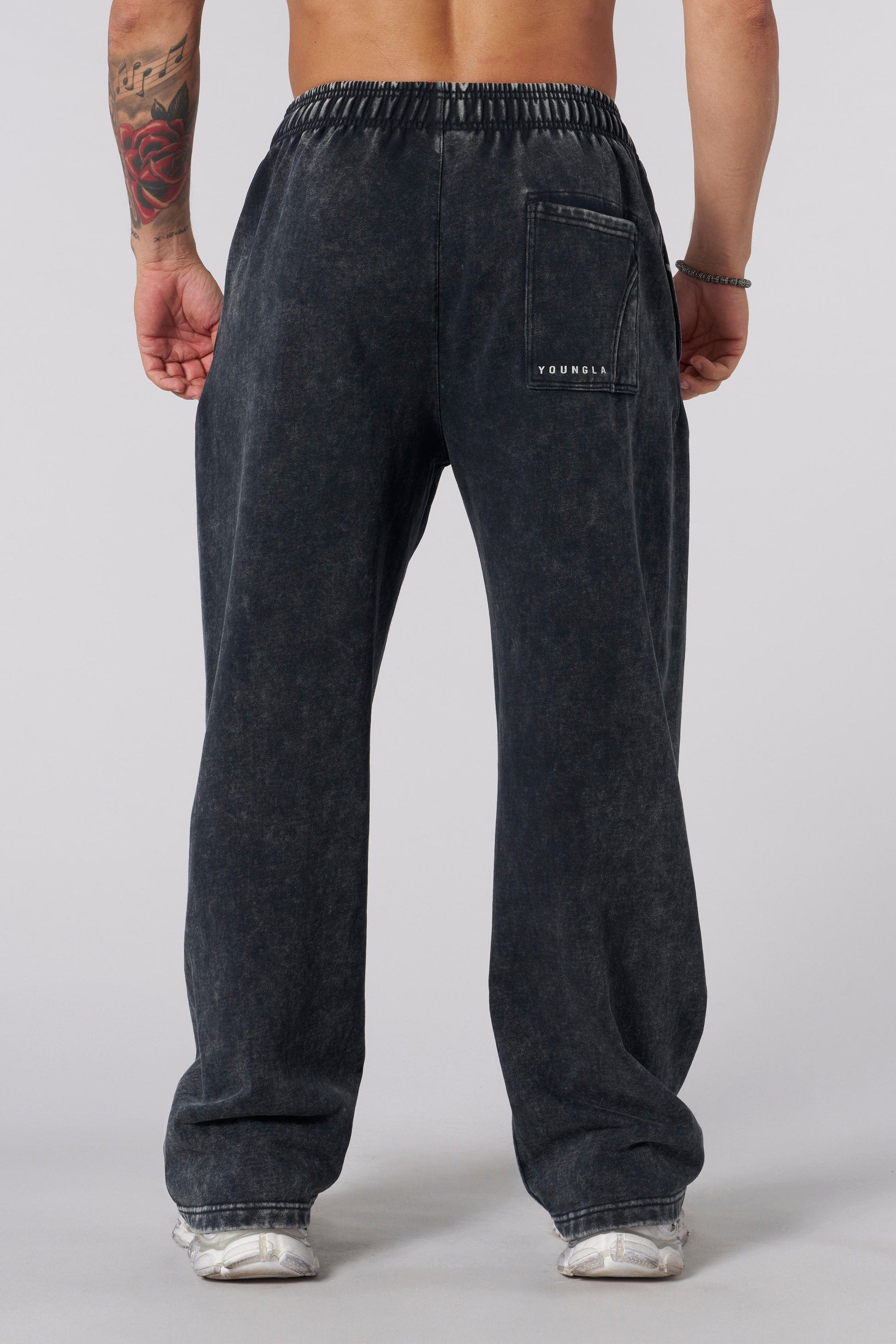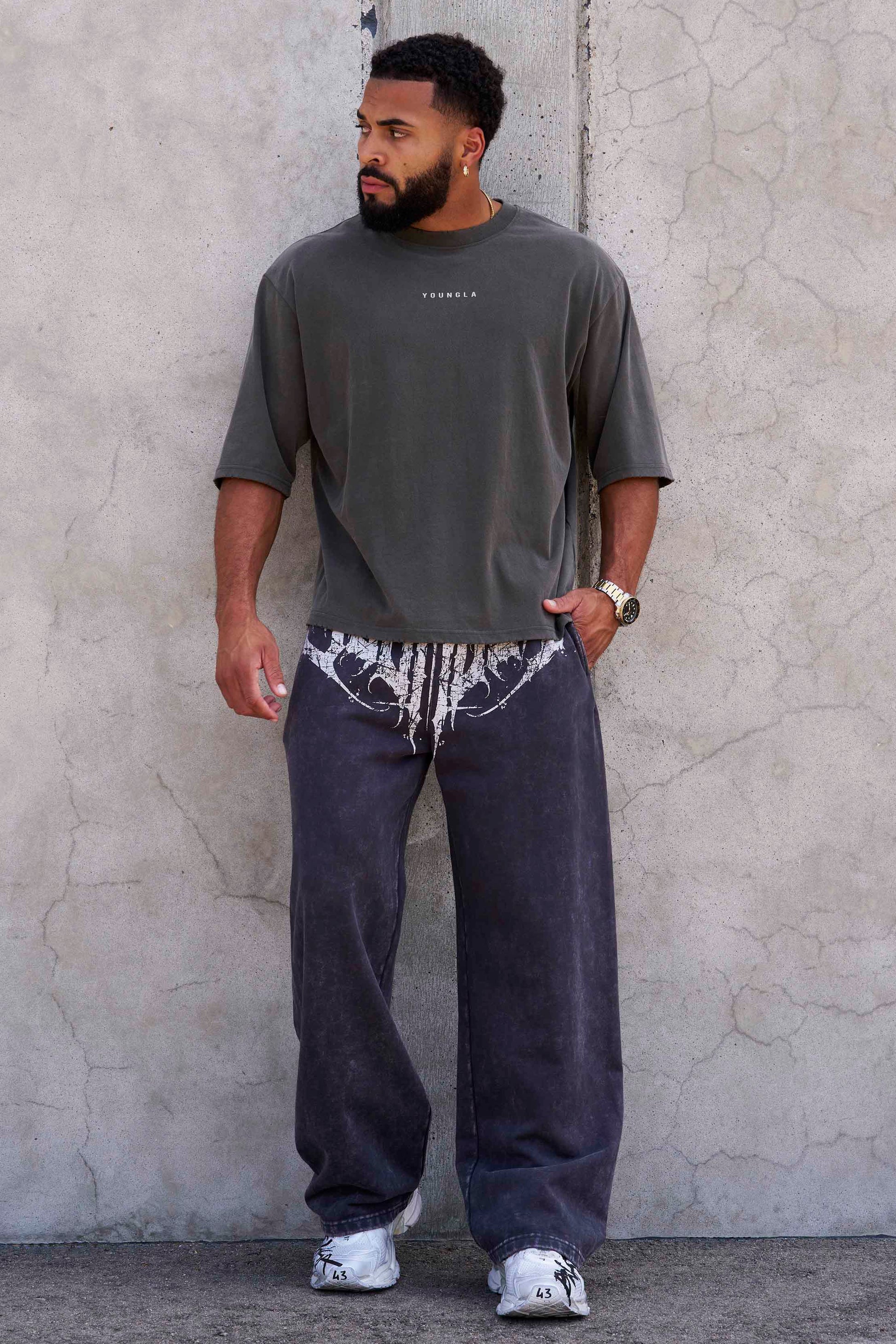 DESIGN: Step up your streetwear game with our Dark Wave Joggers. With a distressed tribal graphic print on the front crotch area and a vintage-washed finish, these no-cuff joggers combine bold design with ultimate comfort. Ideal for casual outings or lounging at home, they bring a distinctive, stylish edge to your everyday wear.